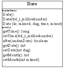(frarådes): Disse metoder blev frarådet fra JDK version 1.1, fordi de ikke understøtter andre kalendere end det gregorianske kalendersystem, der bruges i den vestlige verden. Det betyder dog ikke det store for europæiske programmer.