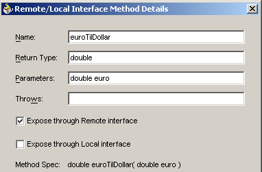 Husk at afkrydse 'Expose through Remote Interface', ellers bliver metoden