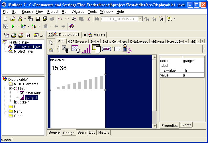 Sammen med JBuilder MobileSet ligger også en pdf-fil, som bl. a. giver en nærmere beskrivelse af, hvordan installationen foregår. Husk, at du skal ind og ændre i stien til JDK'et til der, hvor du har Wireless Toolkit liggende, for at få lov til at lave en midlet.
