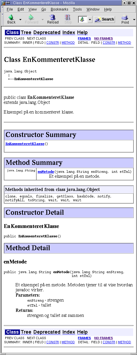javadoc EnKommenteretKlasse.javaResultatet er den velkendte dokumentation for klasser (vist til højre).